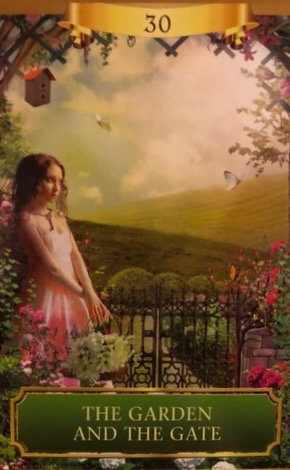 The “Garden and the Gate” oracle card suggests that while you may be in a place of comfort, like a beautiful garden, a locked gate might represent a fear of the unknown that is preventing you from exploring new opportunities and your true path. The card’s message is to enjoy your current blessings while having the awareness to use the “key” (your will and awareness) to open the gate and embrace a wider world.